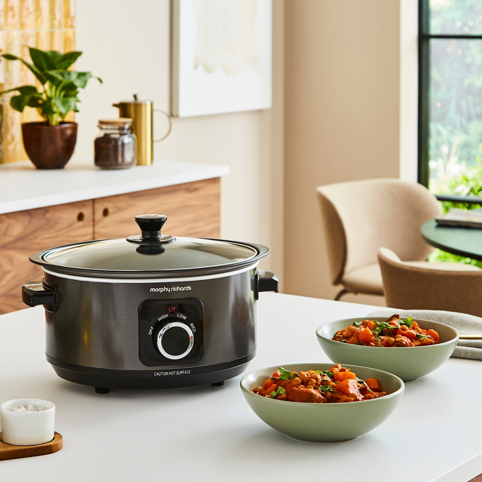 Entdecken Sie den Morphy Richards Sear & Stew Slow Cooker! Dieser Allround-Topf vereinfacht das Anbraten und Garen in einem einzigen Topf.